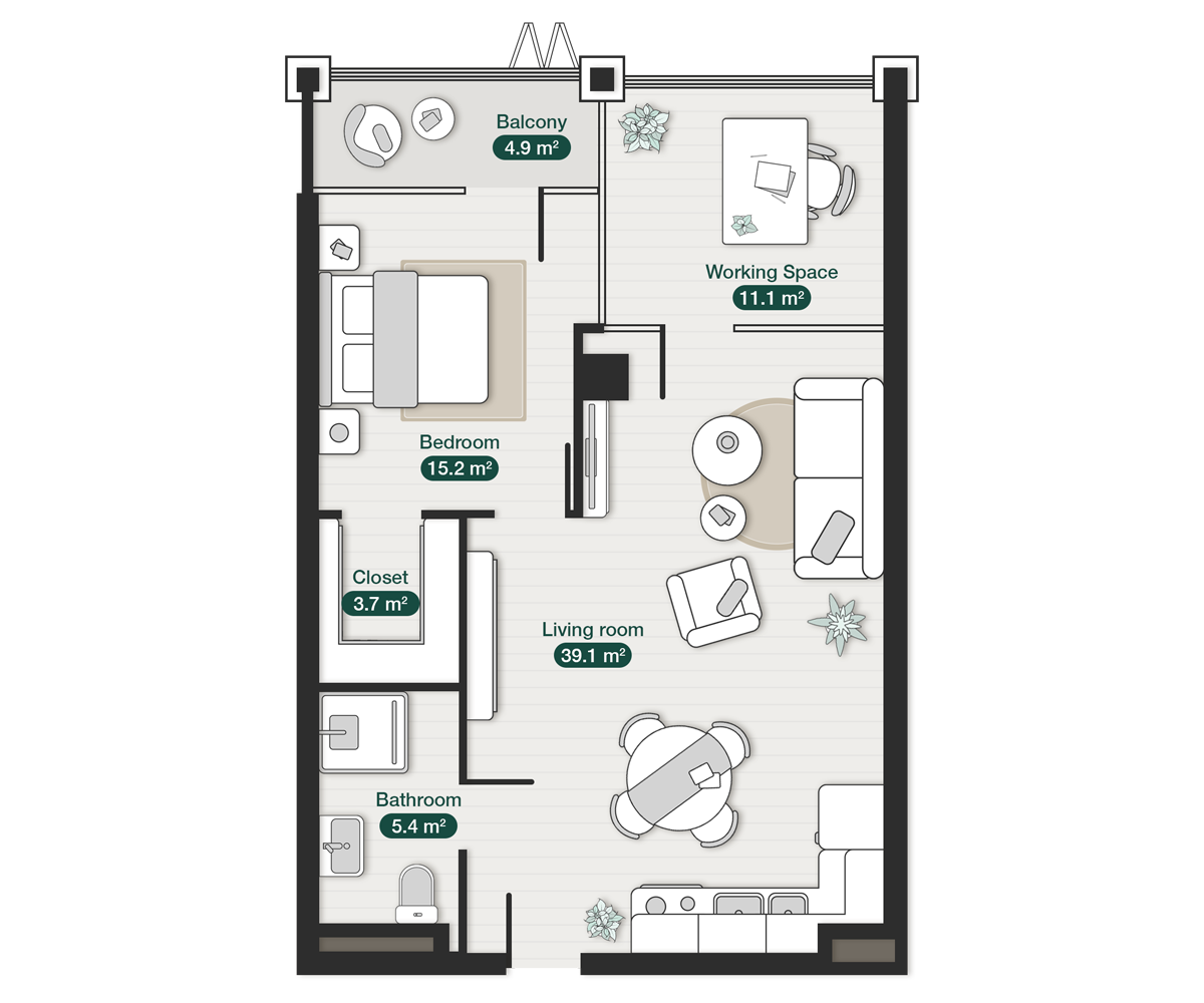 • Noise-protected private space and tranquility in each apartment