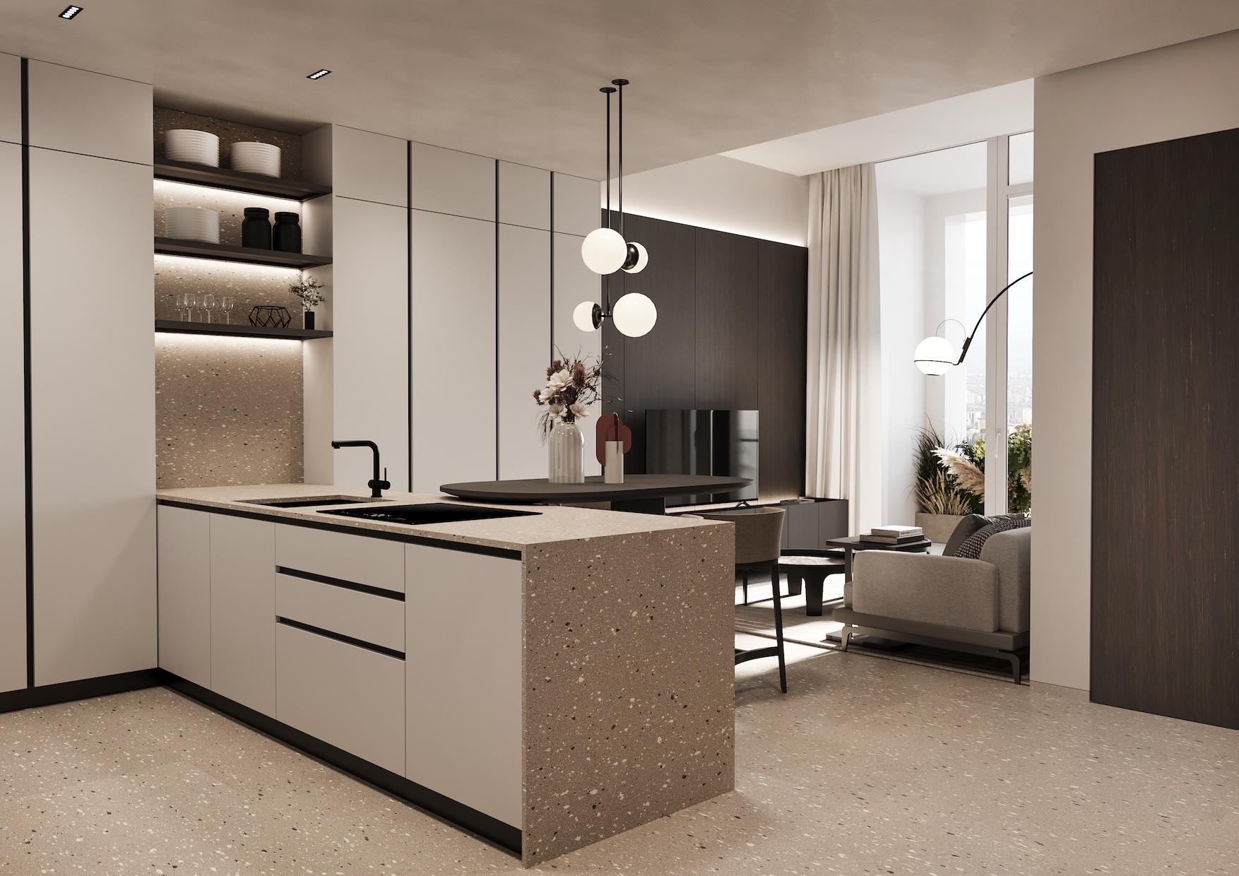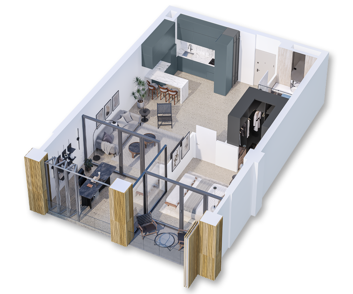 Zion Krtsanisi Embassies one bedroom 3d render zion-krtsanisi-modern-one-bedroom-apartment-n144-plan