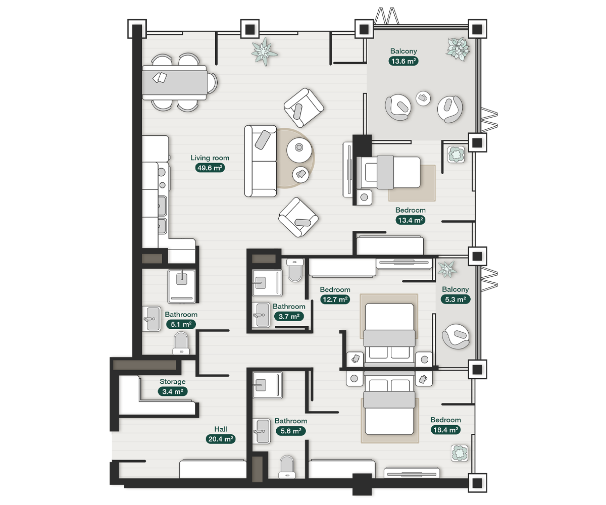 Luxury Apartment Zion Krtsanisi 3D render zion-krtsanisi-three-bedroom-home-apartment-n151-plan