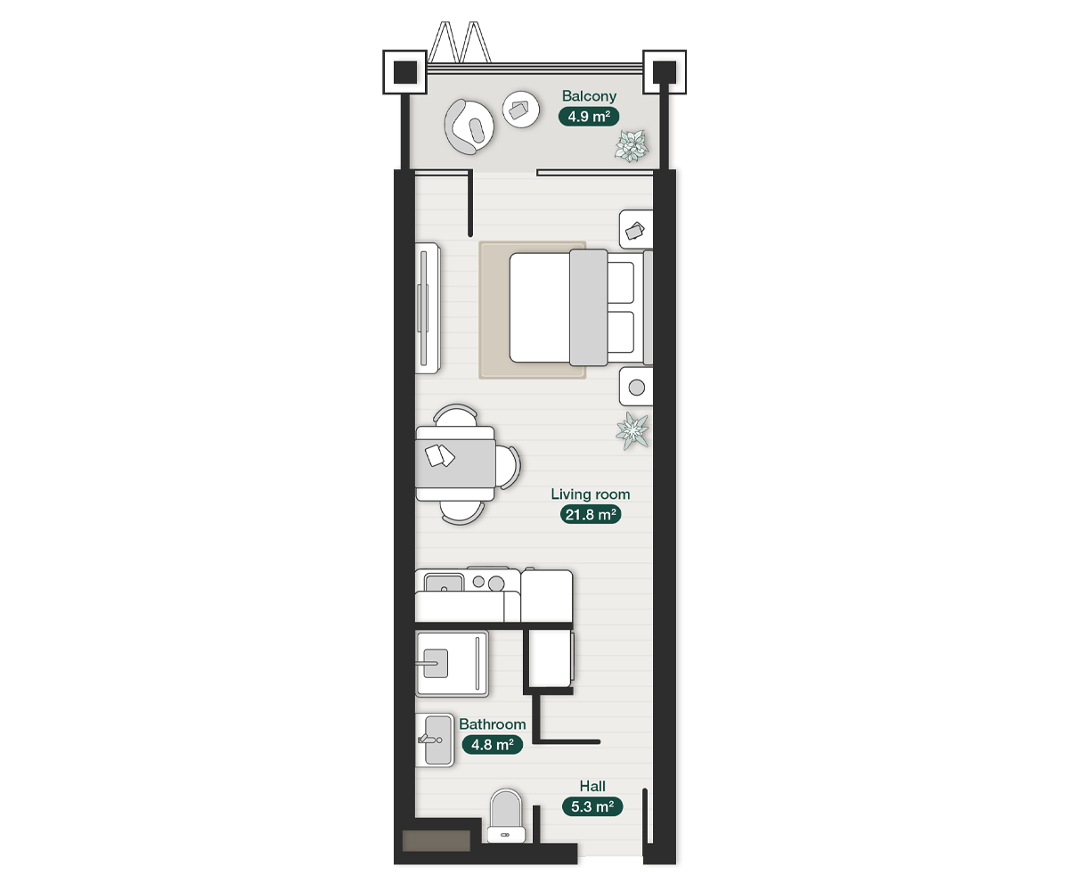 Premium Apartment Tbilisi Investment 3d render Luxury zion-krtsanisi-studio-apartment-n214-living-layout