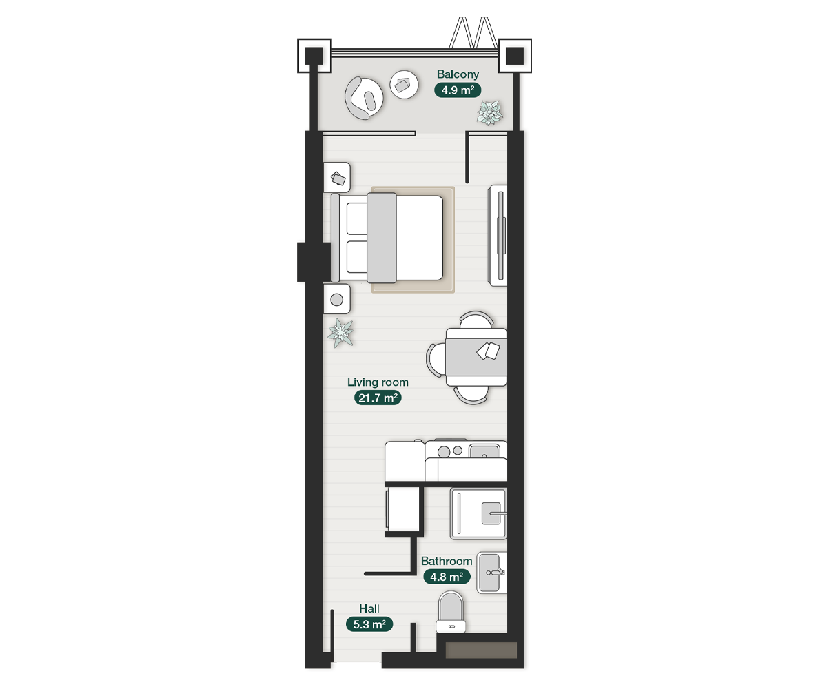 studio premium apartment krtsanisi ZION 3d render studio-home-layout-zion-krtsanisi96a