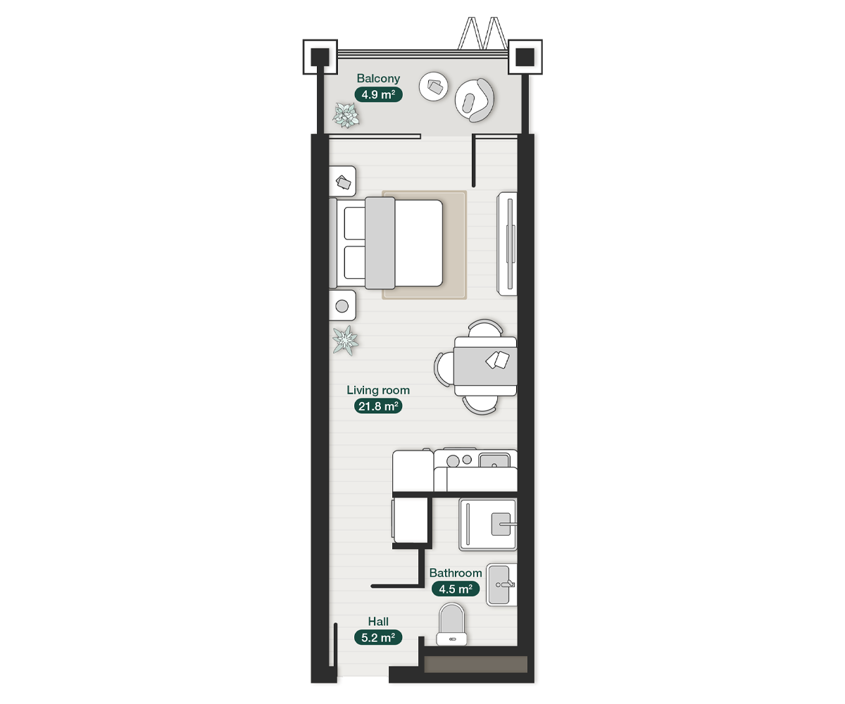 studio premium apartment krtsanisi ZION 3d render studio-living-plan-zion-krtsanisi126a