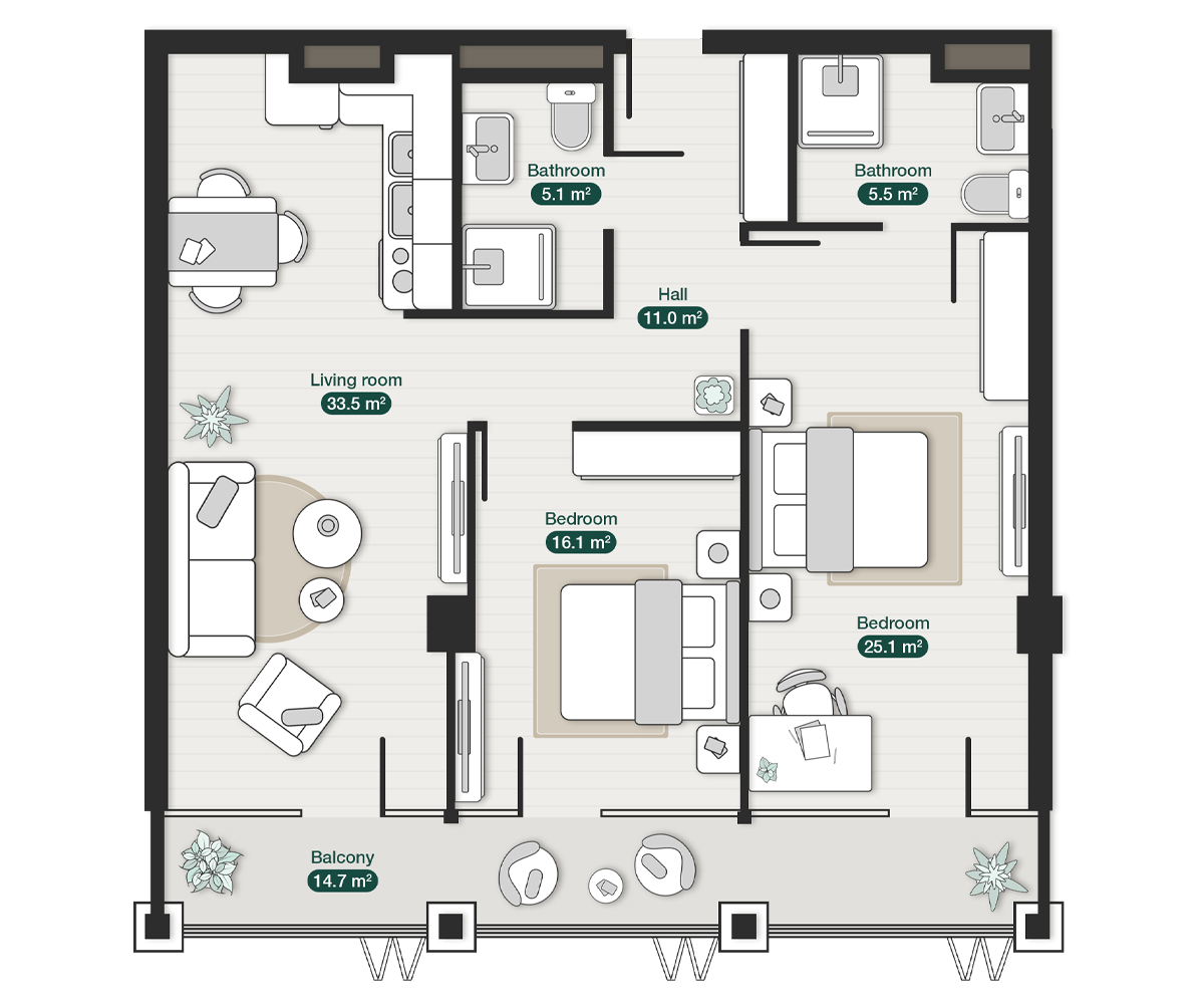 Premium Apartment Zion Krtsanisi 3D render zion-krtsanisi-two-bedroom-residence-apartment-n21-22-layout