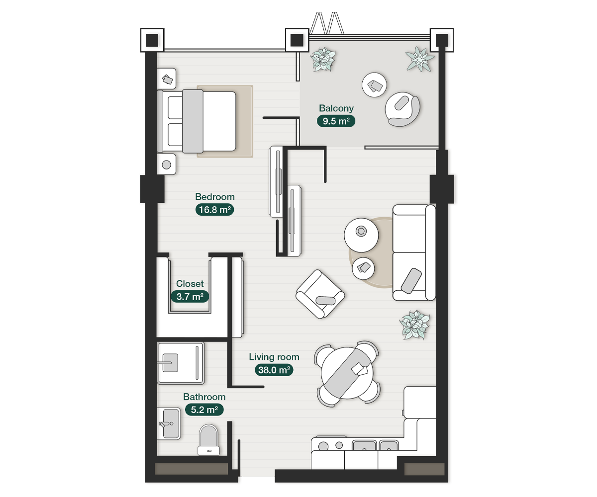 • Noise-protected private space and tranquility in each apartment