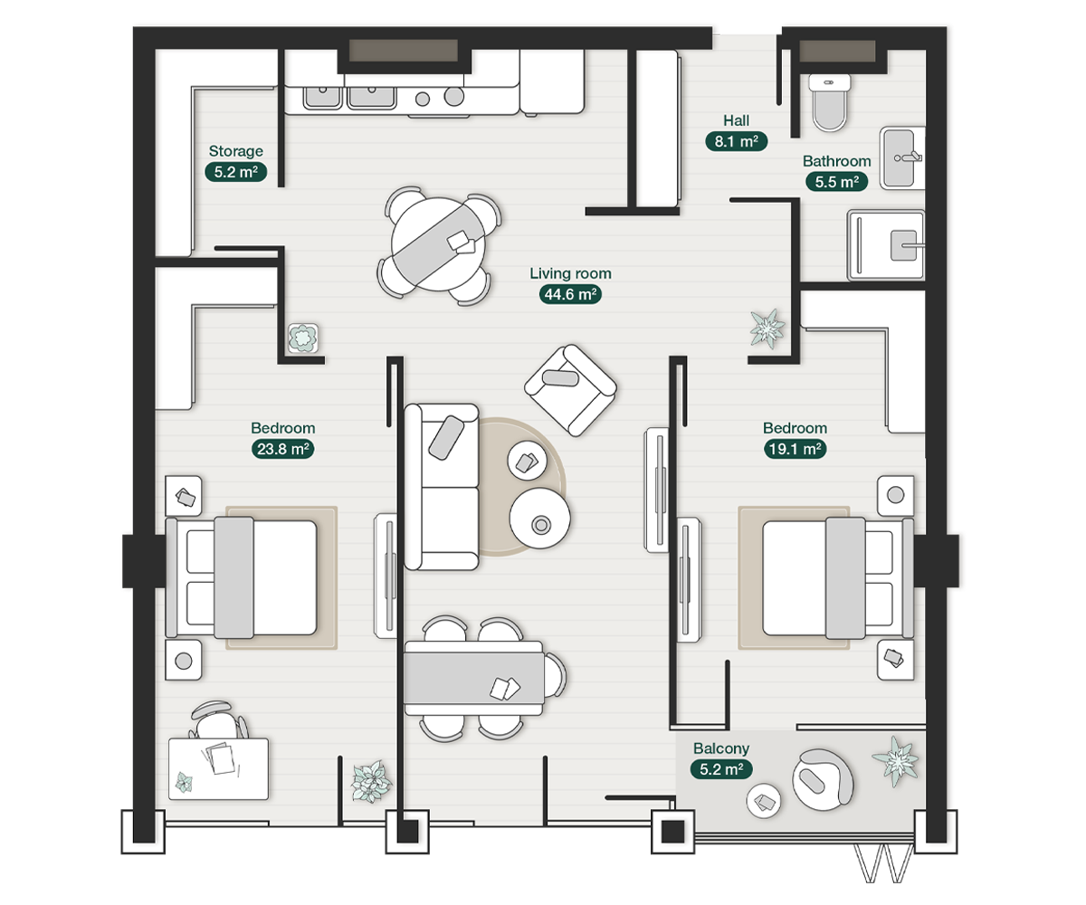 Luxury 2 bedroom apartment ZION Premium Residential zion-krtsanisi-two-bedroom-apartment-n8-layout