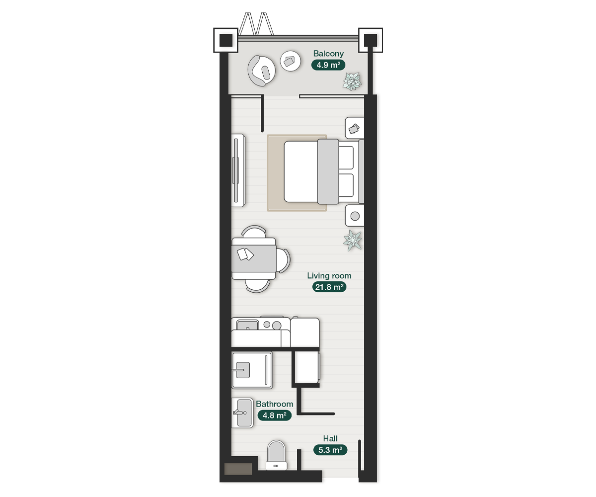Premium Apartment Tbilisi Investment 3d render Luxury krtsanisi-studio-apartment-floor-plan-zion88
