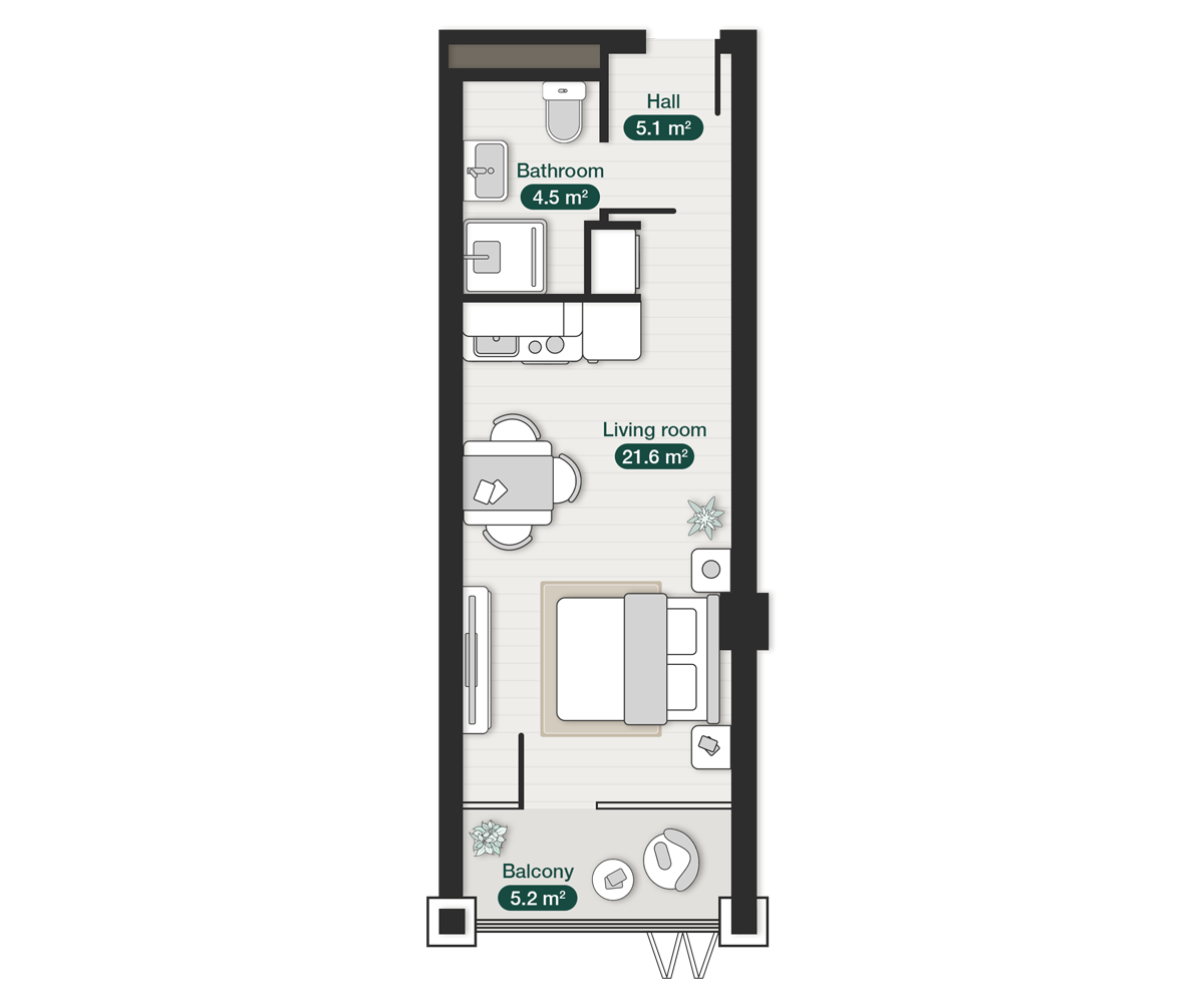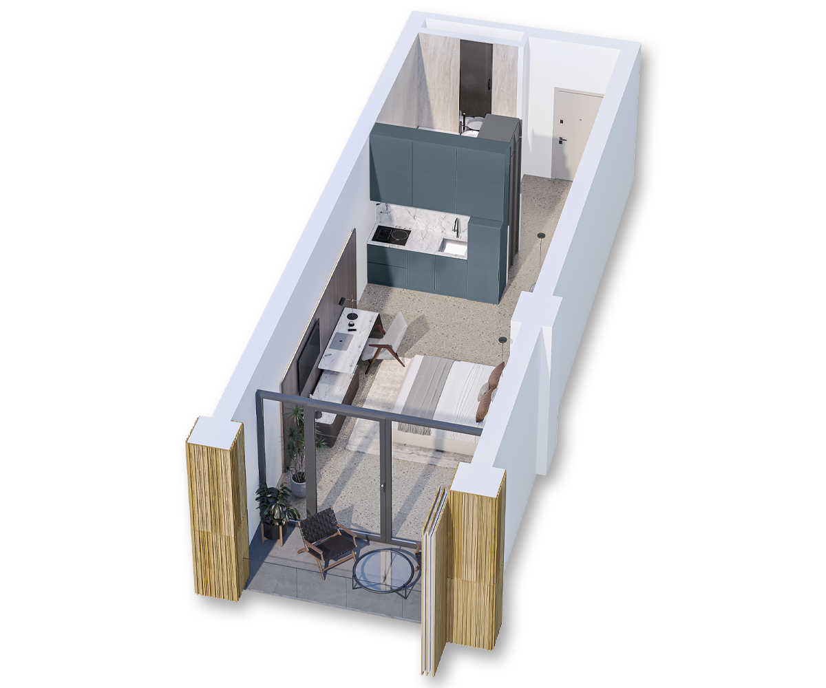 studio premium apartment krtsanisi ZION 3d render zion-krtsanisi-modern-studio-apartment-n9-plan