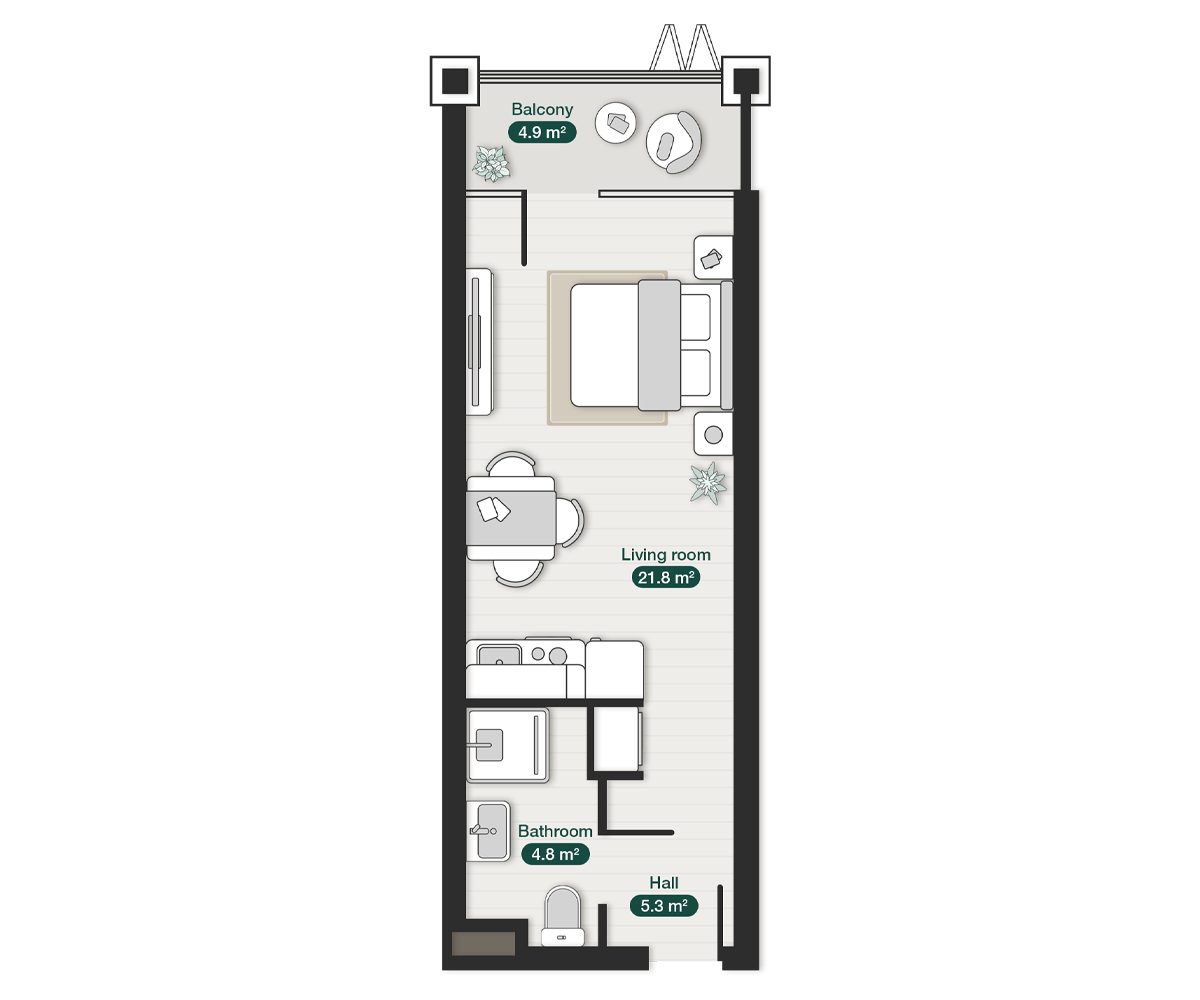 Premium Apartment Tbilisi Investment 3d render Luxury studio-living-plan-zion-krtsanisi97