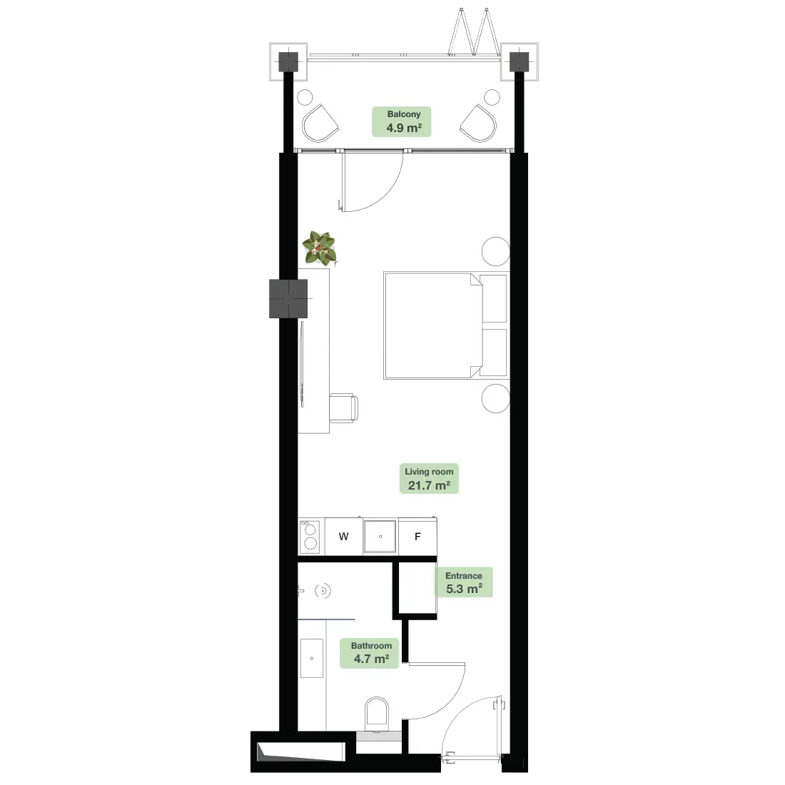 • 7.5 მეტრი ჭერის სიმაღლე ლობიში