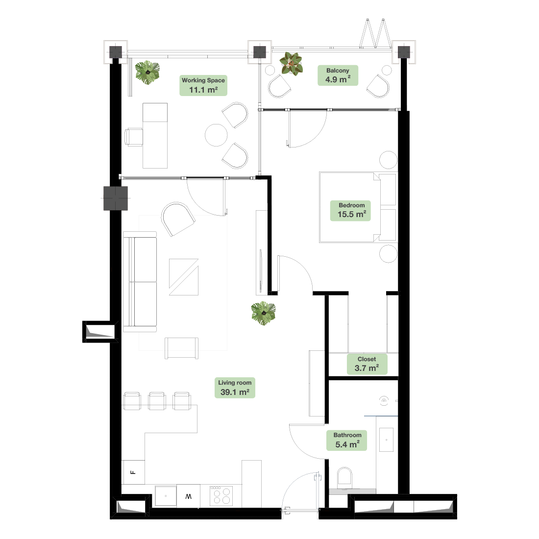 • 3.45 მეტრი ჭერის სიმაღლე ბინებში