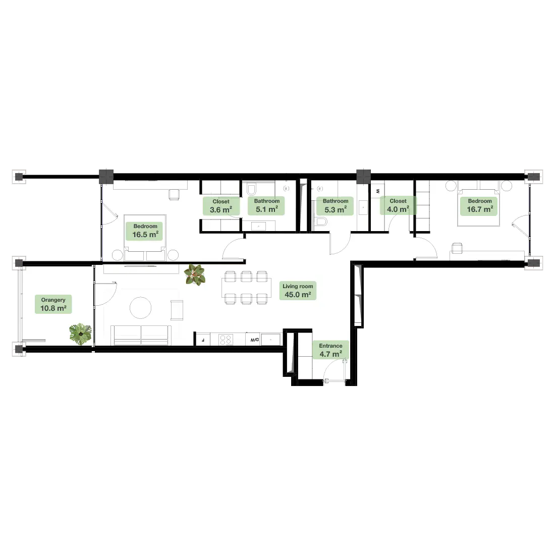 პროექტში გამოყენებულია საერთაშორისო ბრენდების წარმოების უმაღლესი ხარისხის მასალები