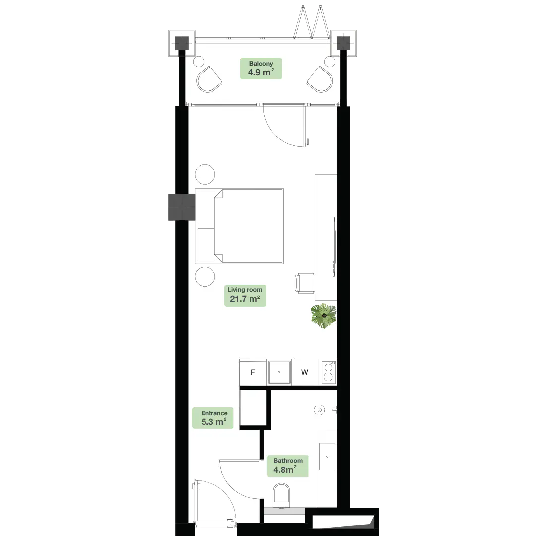 • 7.5 მეტრი ჭერის სიმაღლე ლობიში