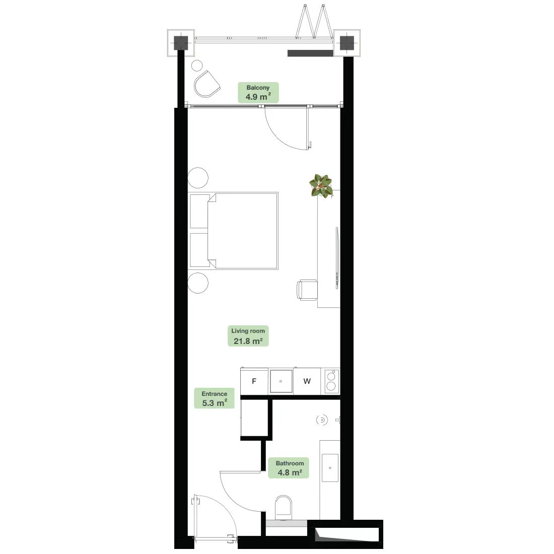 • 7.5 მეტრი ჭერის სიმაღლე ლობიში
