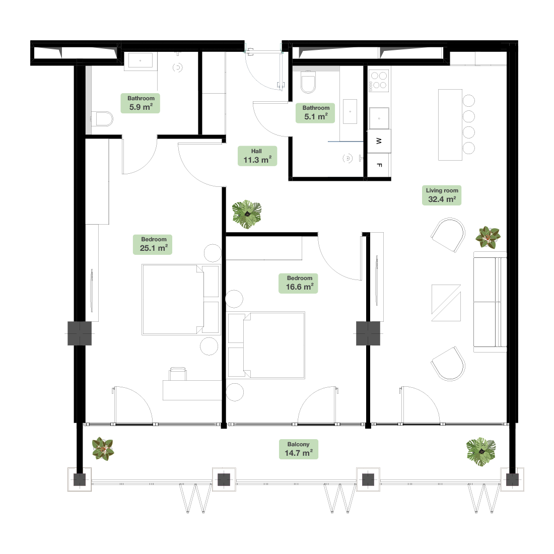 პროექტში გამოყენებულია საერთაშორისო ბრენდების წარმოების უმაღლესი ხარისხის მასალები