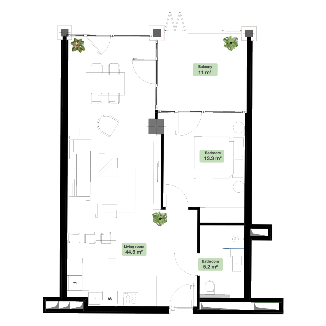 44.5 მ2