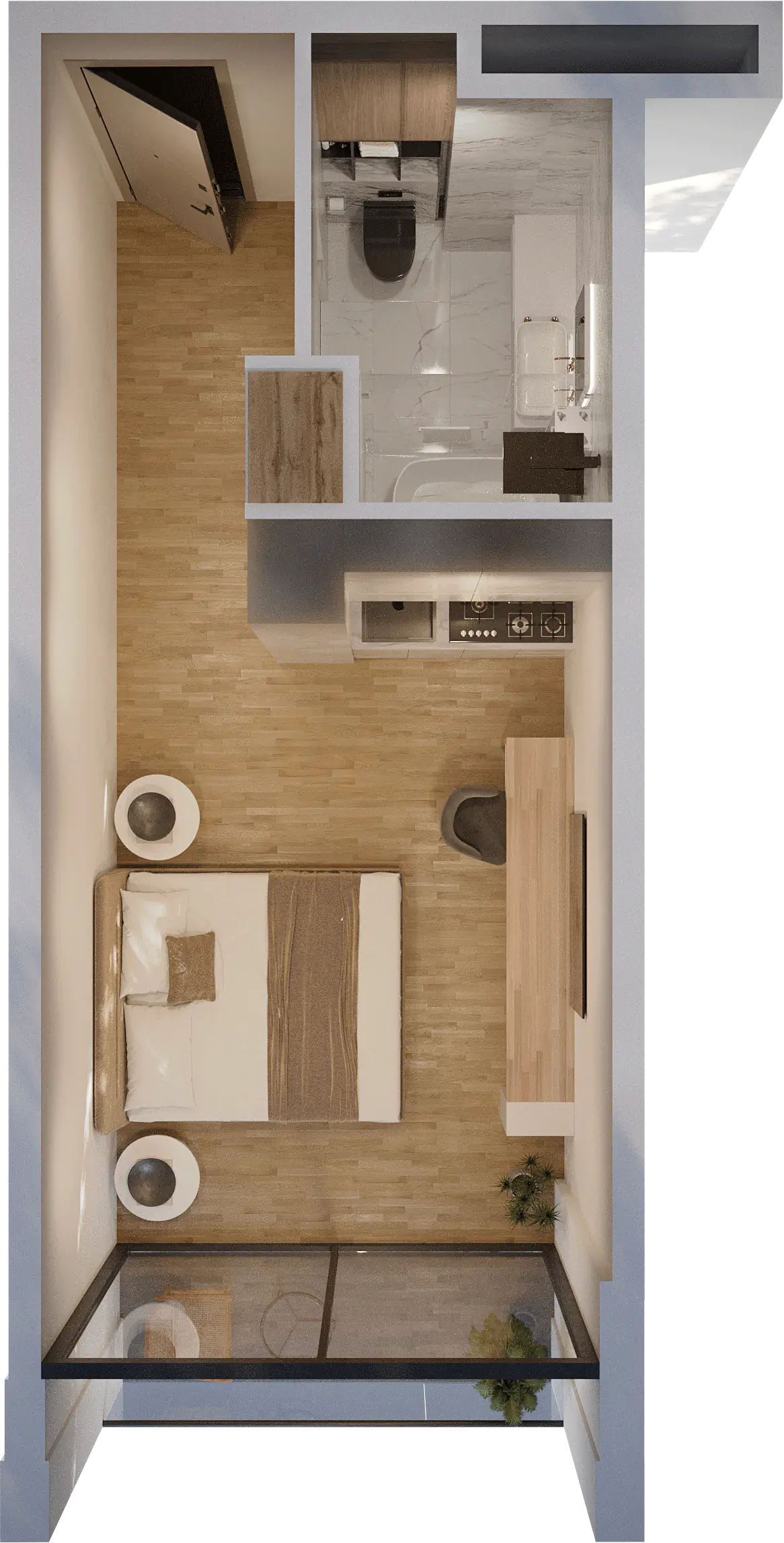 • 3.45 მეტრი ჭერის სიმაღლე ბინებში